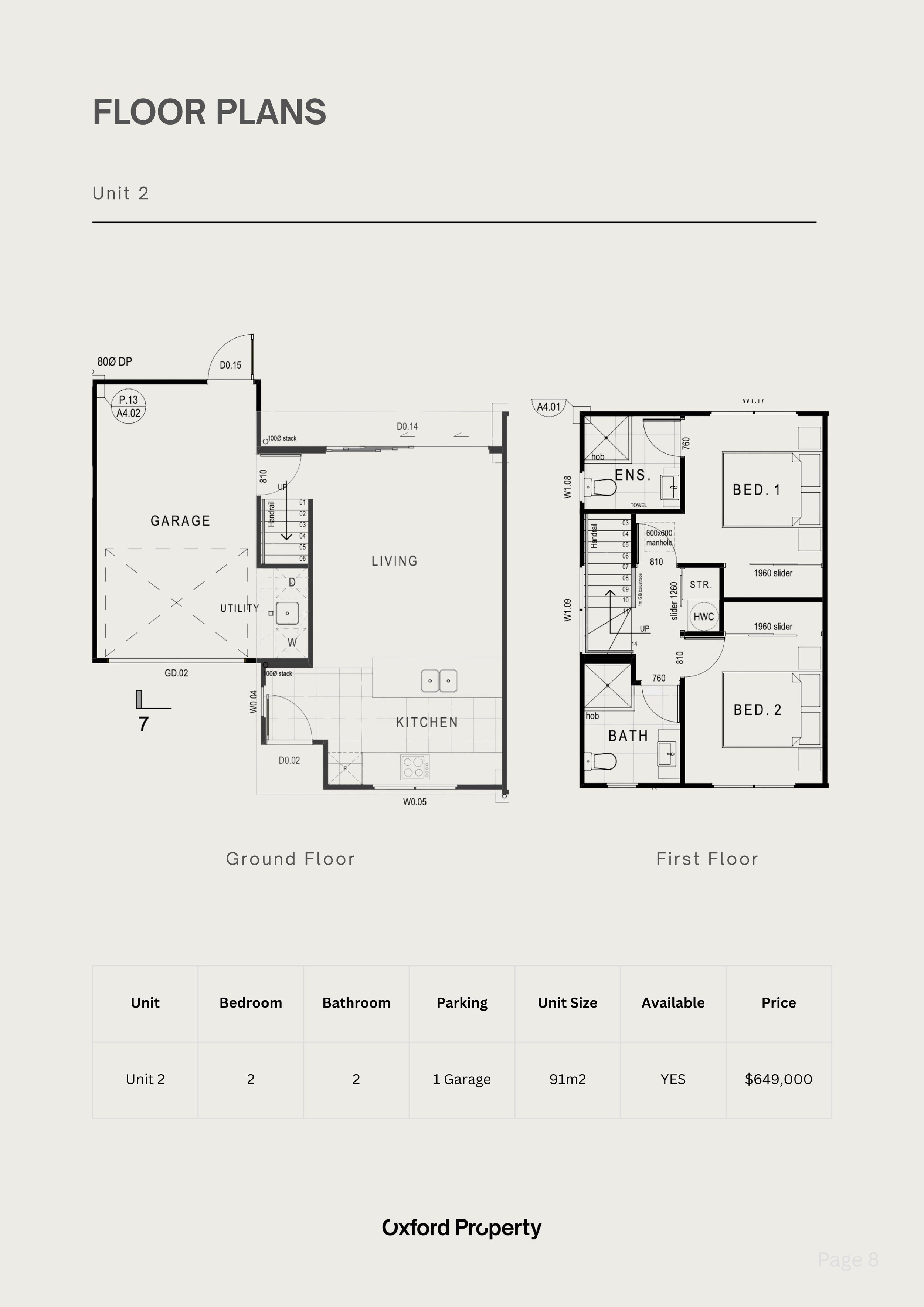 Unit 2 | 2 | 2 | 1 Garage | 95m2 | YES |